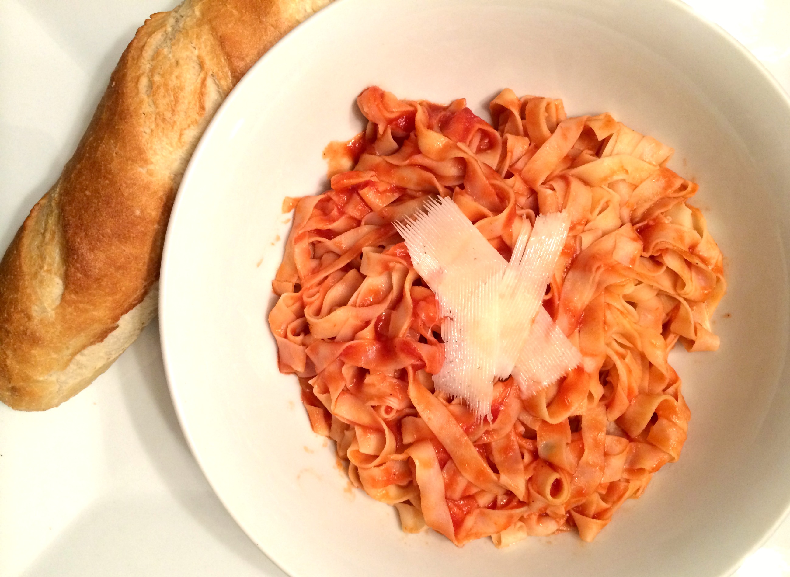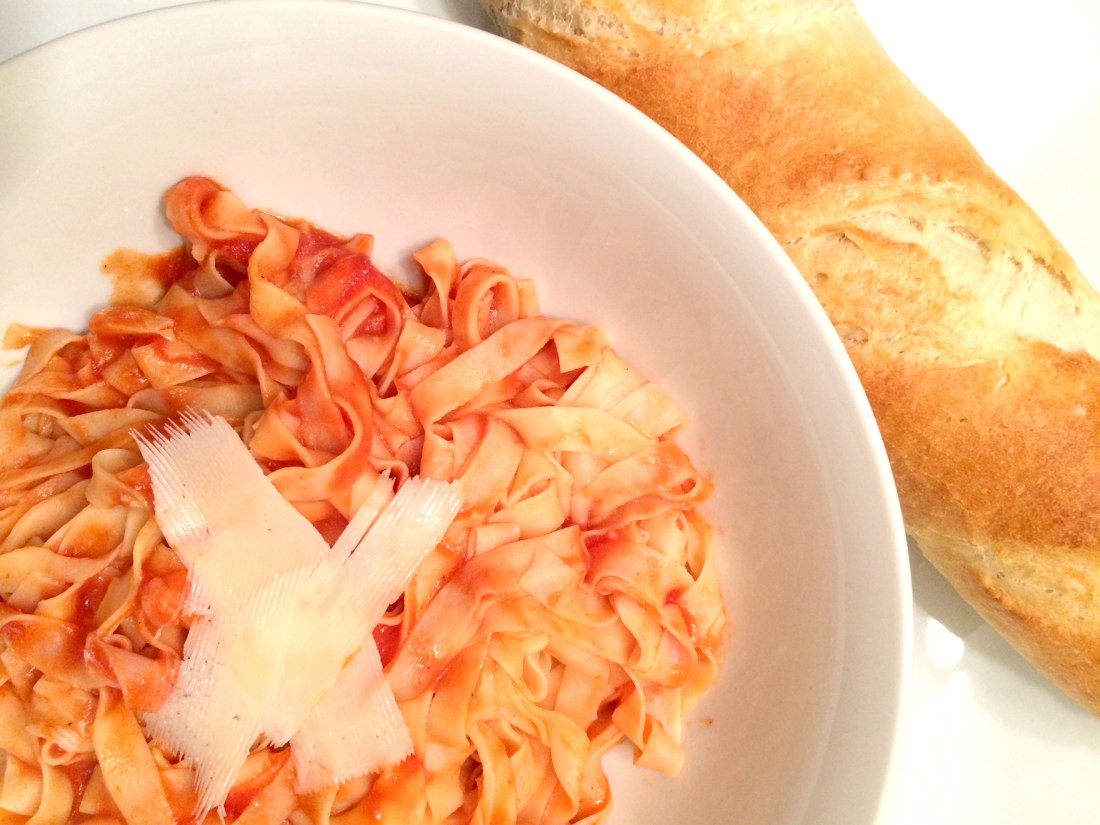 I learned to make homemade pasta from my 93-year-old, straight off the boat, Italian Grandma. Grandma spoils us (my mom, aunts, uncles and cousins) every Sunday, making a large pot of sauce and meatballs with macaroni. If we are lucky, she will also make us homemade fettuccine noodles, from scratch. Grandma is from Sicily, Italy and came over to America when she was 25 years-old. In addition to teaching me a variety of Italian words, Grandma also taught me to cook from the heart. She is the strongest and most generous woman I have ever known. My love for my Grandma goes beyond words. This recipe signifies my Italian heritage.