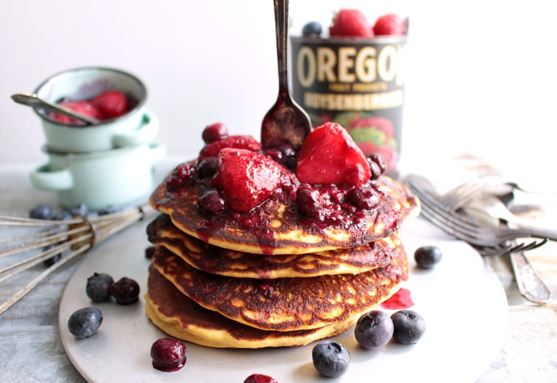 vegan {egg-less & dairy free} pancakes & fresh berry coulis