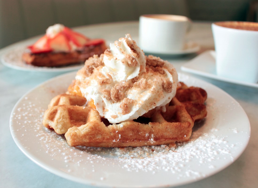 This charmingly restored cafe on Abercorn Street offers a lot more than just a stunning view. With its European inspired ambience and imported Parisian décor, the Mirabelle Cafe prides itself in being “Savannah’s only destination for authentic Belgian Liege Waffles”. Owners Brett and Kim Turner, from the Whitaker Investment Group, entrusted the Mirabelle Café to charismatic and enthusiastic manager, Martin Powell. Powell has been dedicated to the Café since its opening on May 25, 2015. “There is a lot of charm in this little space,” Powell honorably professes, referencing the modest square footage of the duel-roomed café, bordered by exposed brick walls, studded in teal accents and garnished with marble surfaces. In like manner, the small-scale kitchenette in this French inspired hub does not repress Powell’s inventiveness, but only inspires concoctions, ranging from gluten-free chocolate cake with chocolate ganache to house made lemon curd creme. Of these creations, the dish upon which the entire café menu is based is of course, the Liege waffle.