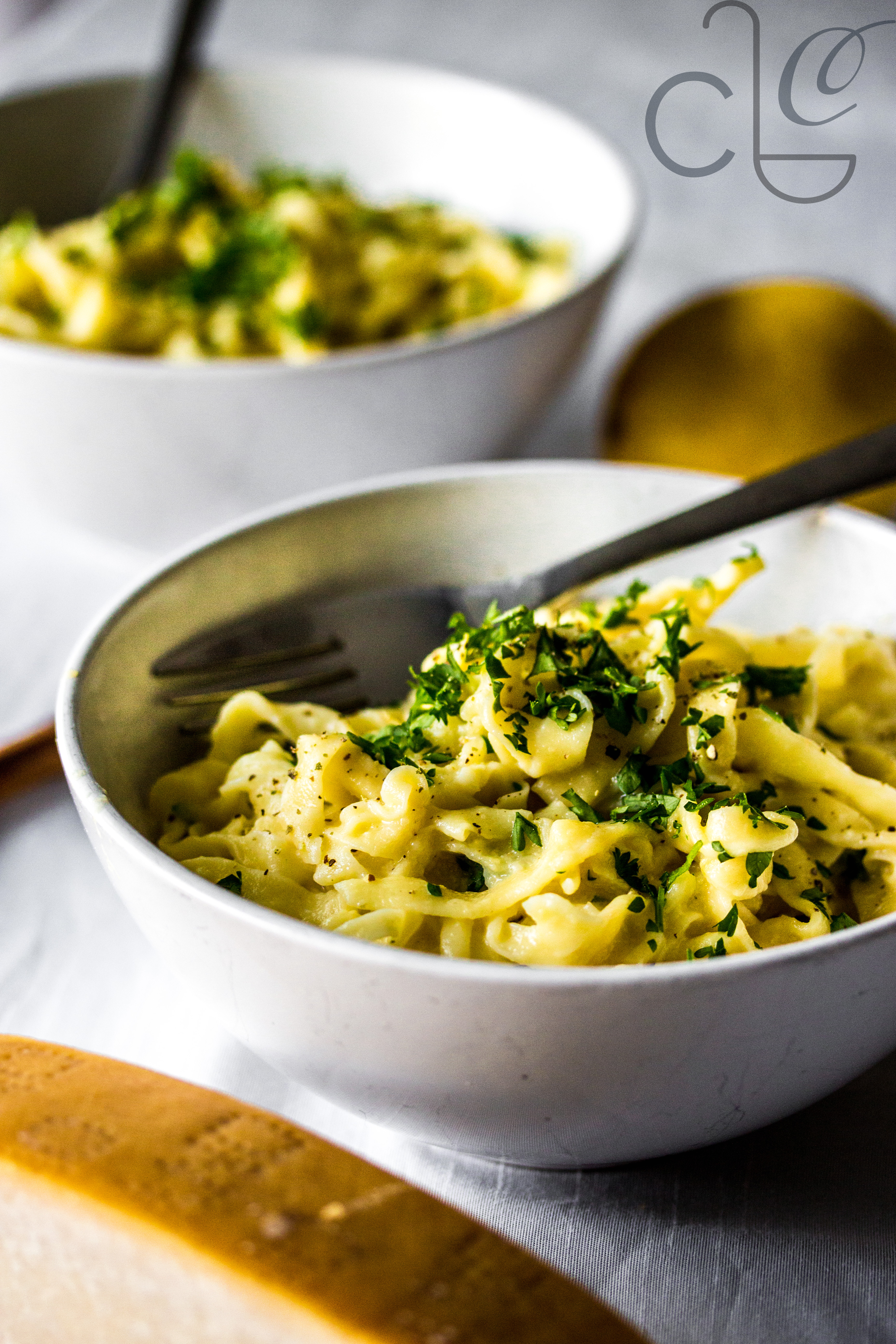 Carbonara is so impressive. Silky whipped eggs create a smooth sauce that replicates cream sauce, without the heavy cheese or cream. Carbonara typically has pancetta or bacon, but on this day, I decided to make a cacio e pepe version with some parsley. Simple. Comfort.